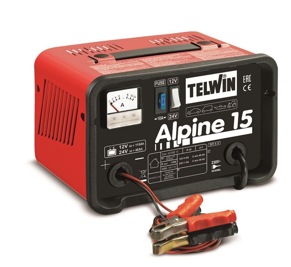 Nabíjačka autobatérií Telwin Alpine 15 12 / 24V nabíjací prúd 9 / 4,5A, pre automobilové batérie 30-115 Ah s elektrolytom, vhodná aj pre autá s dieslovým motorom.