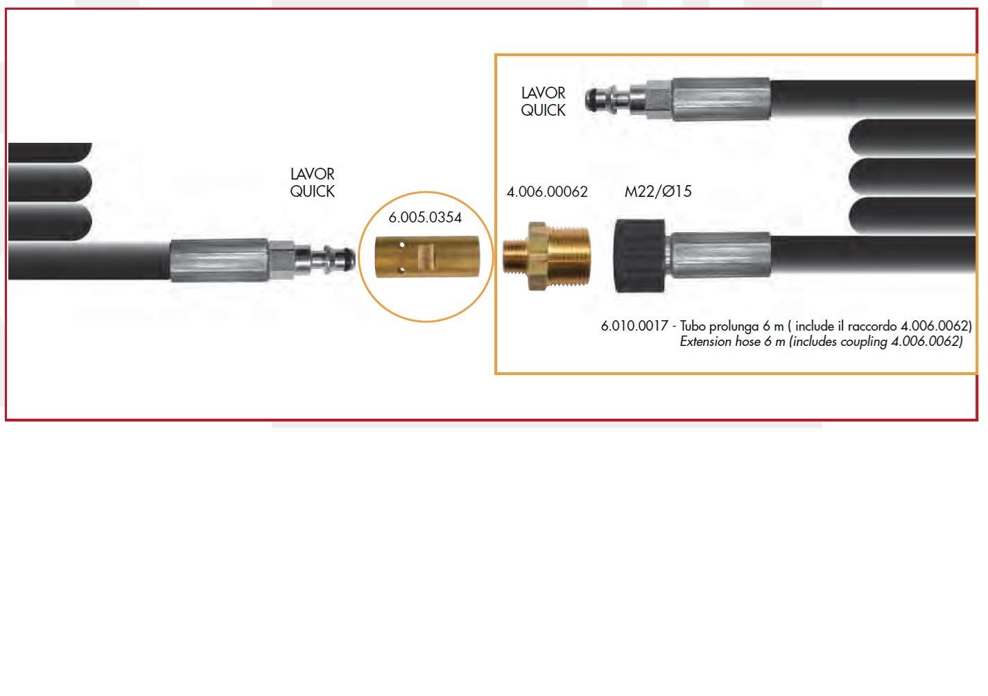 Sada na predĺženie tlakových hadíc Lavor - Fasa Sada 2 ks (kód 6.005.0354 + 4.006.0062) Pasuje na všetky produkty Lavor - Fasa s rovnakým ukončením hadice