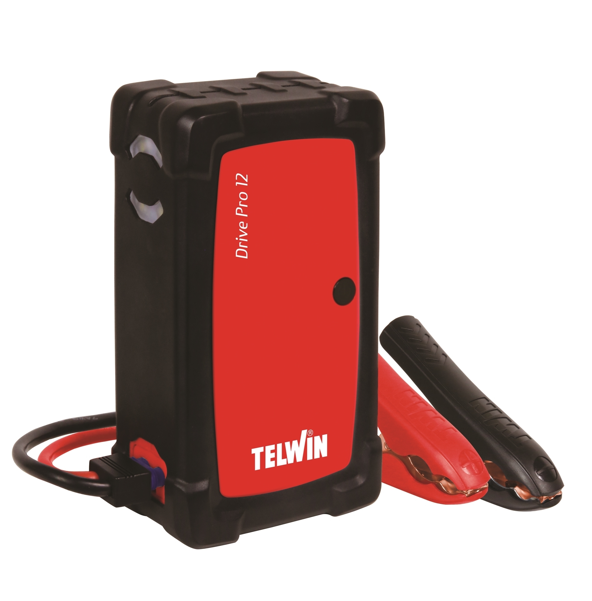 Štartovací zdroj - Powerbanka Drive Pro 12 Telwin, prenosný štartovací booster 12 V a Power Banka, štartovací prúd 500 A, pre napájanie a nabíjanie elektronických prístrojov ako tablet, smart phone, PC atď. 2x USB port, svietidlo, štartovacie káble. Bezúdržbová batérie.