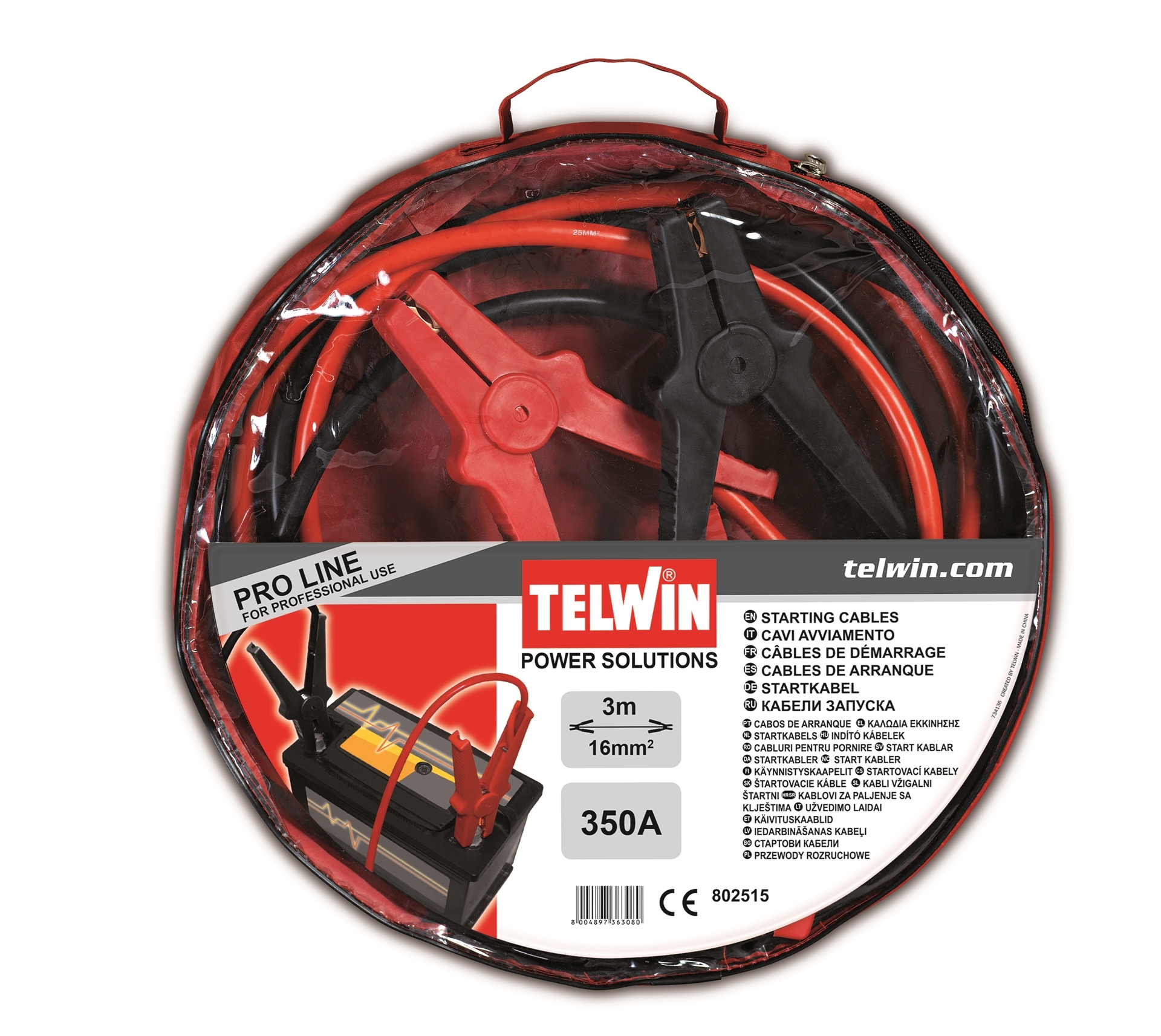 Štartovacie káble 350 A Telwin pre núdzové naštartovanie, dĺžka 3 m.