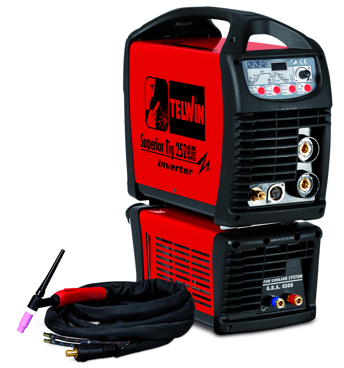 Zváračka TIG - Superior TIG 252 AC / DC - HF / LIFT VRD AQUA Telwin, s vodným chladením, TIG / MMA, AC / DC, HF / LIFT, PULSE, Easy PULSE, 250 A, 3x400 V, mikrobodování, s kompletným príslušenstvom.